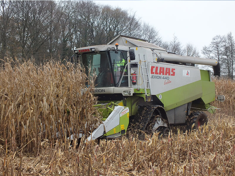 - Mais dreschen mit 8-reihigem Maispflücker am Allraddrescher