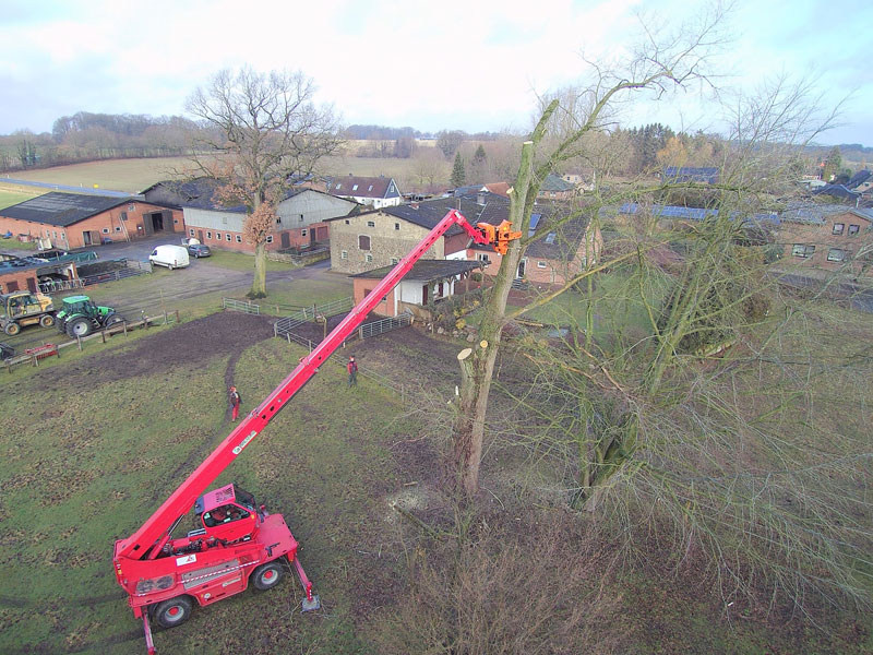 - Abschnittweise Fällung von Bäumen bis zu 37 m Höhe